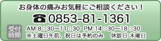 | 受付時間 | 8:30~11:30 14:30~18:30 土曜日午前と祝日は予約のみ |