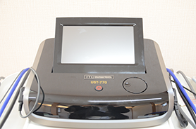 ①超音波治療・・・患部に毎秒80~300万回の音波を与えることで、身体の深い部分にまで温熱マッサージを行う治療法です。超音波のエネルギーは最大で体内6cmまで到達し、手技では届かない筋肉の奥深くにアプローチが可能です。プロスポーツの現場でも多く使用されています。刺激も穏やかで電気刺激が苦手な方にお勧めです。