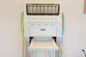 筋緊張(コリ、ハリ感)、痛みに対して高い効果が期待出来る電気治療器です。従来の低周波治療器よりも深部への刺激が可能となり治療効果格段に上がりました。