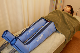 空気圧によるポンプ効果で筋肉の凝りをほぐし、循環系の改善を行うことによって血行が促進されます。